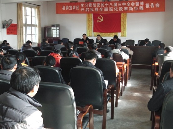 为深入学习实践党的十八届三中全会精神,切实把广大干部群众的思想和行动统一到全面深化改革的决策部署上来。1月19日,蒲稳侗族苗族乡召开了宣讲会,全体乡干部职工、村干部、乡直机关单位和各党支部负责人共80余人参加会议,同时邀请到县委党校副校长杨建国主讲。
