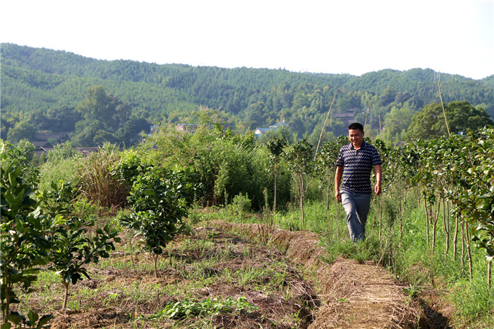 “你这个柚子树好久没来铲草了?草都长起这么高了!”李勇经常到田里走走,看到有些村民没有及时管理,马上打电话“批评”。