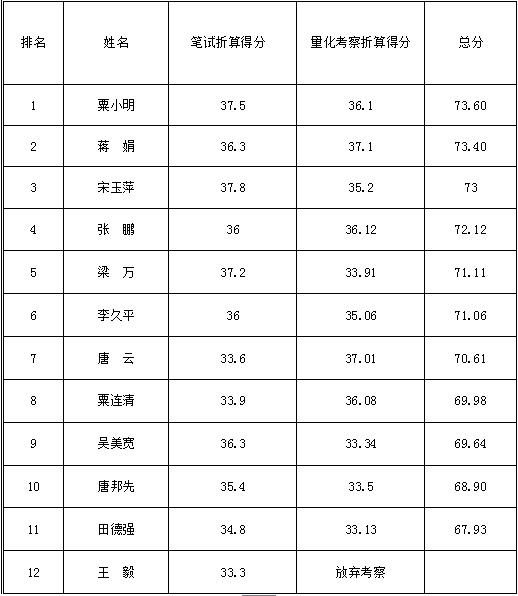 会同县“三类人员”综合得分情况公布 来源: 作者: 发布时间:2016-04-19 浏览次数:1291 次 【字体:小 大】 会同县“三类人员”综合得分情况公布(优秀村干部) 会同县“三类人员”综合得分情况公布(大学生村官) 会同县“三类人员”综合得分情况公布(乡镇事业站所) 【打印正文】 上一篇:会同县从“三类人员”中选配乡镇领导班子成员笔试排名成绩 [ 2016-03-25 ] 下一篇:会同县择优选拔“三类人员”进乡镇领导班子拟提名人选公示 [ 2016-04-22 ]